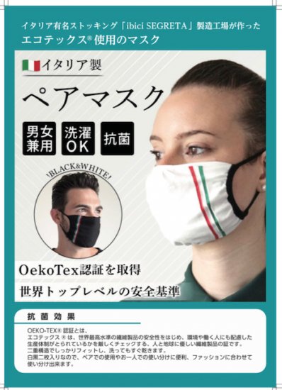 イタリア製 抗菌ペアマスク(ブラック&ホワイト)